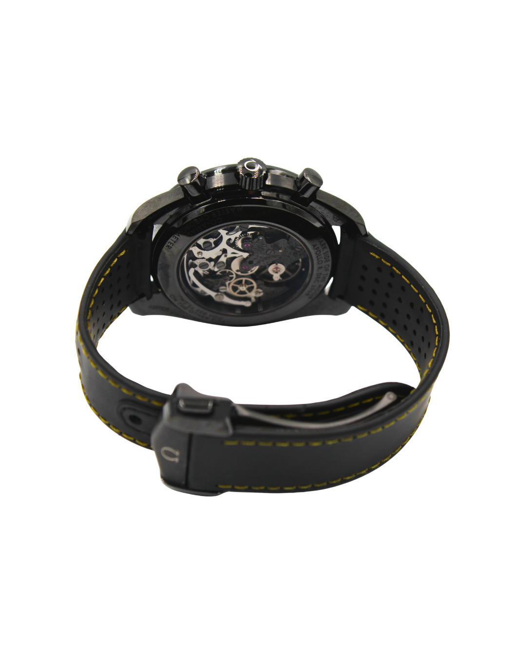 Paired with a black perforated leather strap lined in yellow rubber, this Speedmaster merges precision engineering with emotional storytelling. It stands as a testament to Omega’s legacy of pushing boundaries, for those who value innovation grounded in timeless design.