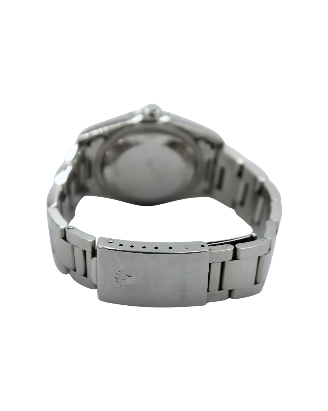 Driven by the renowned Calibre 3135 automatic movement, the Datejust 16200 offers exceptional accuracy and reliability, complete with the iconic Cyclops lens magnifying the date display. The silver dial, framed by crisp hour markers and elegant hands, captures light with quiet brilliance, reaffirming Rolex’s mastery of balanced aesthetics.